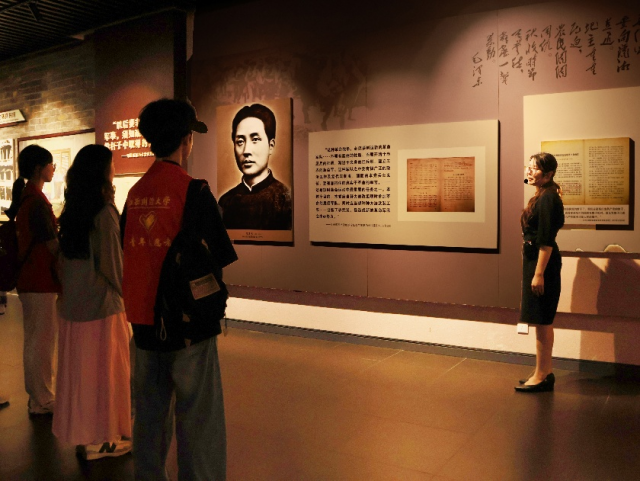 实践团随后参观了多处革命旧址。在工农革命军士兵委员会旧址,队员们看到了旧址内陈设的简陋木桌。文物局同志介绍:“这里建立的士兵委员会和民主制度,保障了士兵权益,提升了军队凝聚力。”走进毛泽东故居旧址,墙上挂着的煤油灯、桌上摆放的旧砚台,让队员们驻足良久。在中国工农革命军第一军第一师第一团团部旧址,斑驳的墙壁上,当年留下的标语依稀可见。大家站在复原的作战指挥图前,仿佛能听到先辈们为了战斗胜利而进行的激烈讨论,深刻体会到革命先辈们面对困境时的坚定信念与担当。